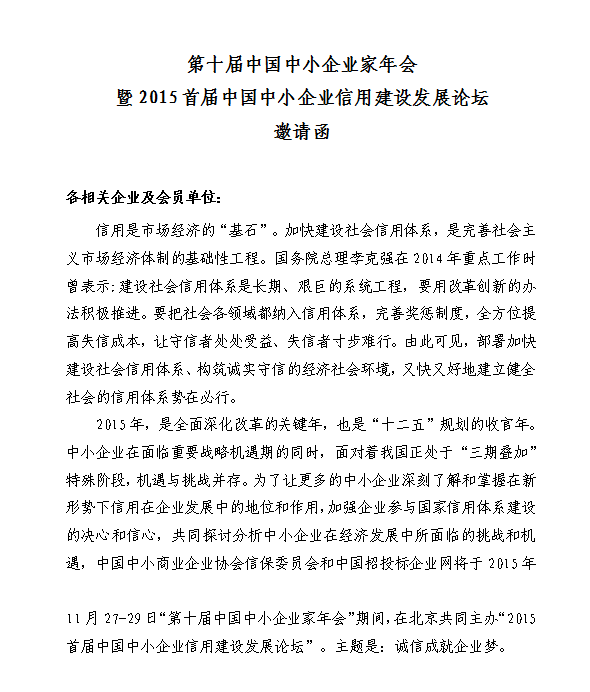 首届中国中小企业信用建设发展论坛