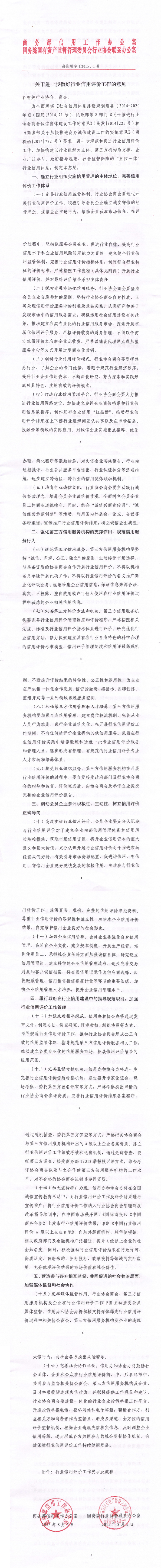 关于进一步做好行业信用评价工作的意见